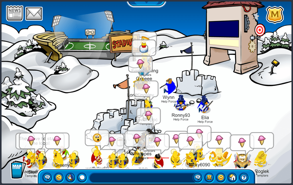 Today we logged on to Battleground Iceberg on Club Penguin Army Battleground to go up against the Help Force in a practice battle which was a laggy but absolute TEMPLAR VICTORY! We began the battle in the Snow Forts and then went to the Stadium and performed some amazing tactics and formations absolutely destroying the Help Force. Amazing performance in the battle, the leadership is proud of you all.