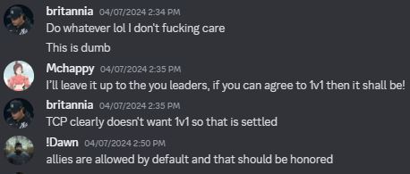 Since day one of the war, the Water Vikings wanted to allow allies by default. This is outlined clearly in their war terms, quoted below:
