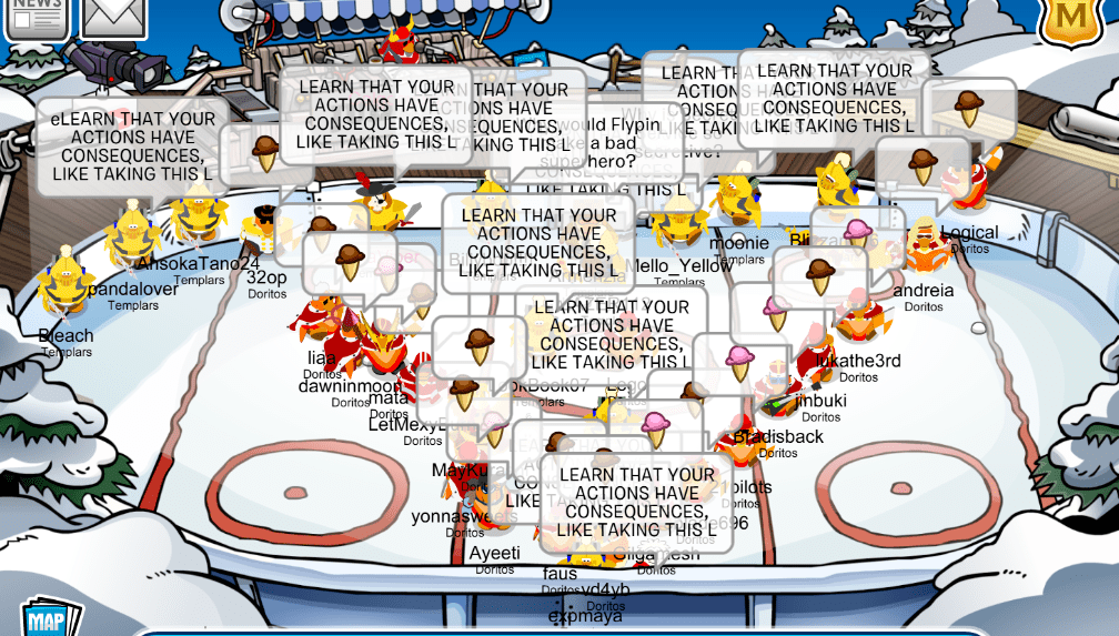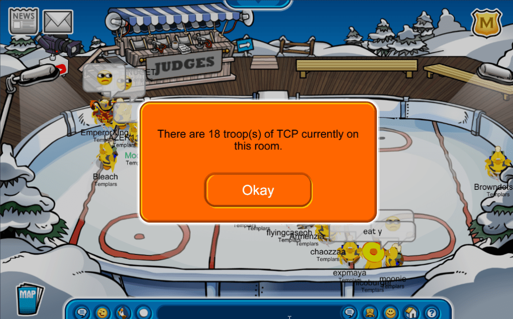We only used two rooms for this battle. This battle was a fun way to train. The Templars looked great throughout the battle and stayed consistent with our forms and tactics. The empire continues to grow! Thank you to the Doritos of Club Penguin for having this practice battle with us!