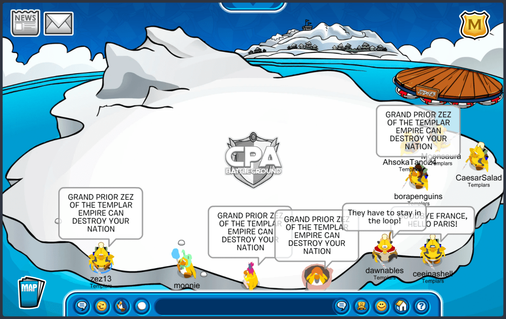 Last Saturday we logged onto Club Penguin Army Battleground on the server Jerusalem to start our routine war training. Our troops arrived a little sluggish to start this event, sending tactics at a stagnant pace before picking it up towards the end. By the end, they would return to their normal quick selves, turning a slow training back into a productive one!