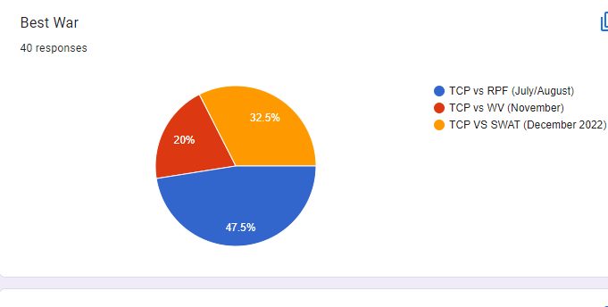 2022. This year saw a lot. With the us rising to max 50+ every single event and being number 1 on the Top Ten for the whole year, I recruited and worked my way to be able to start leading the army in April of that year. It was an honor to lead through this year in Templars, with us consistently maxing 50+ throughout the year, doing more than any army with a huge gap between first and second place on the top ten each week, and with the war against RPF, the wars against SWAT, other wars, and of course, being able to lead the army to victory in Legends Cup.