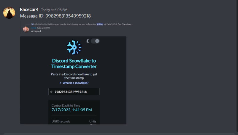 TLDR: Discord snowflakes help you track the exact time a message was sent.